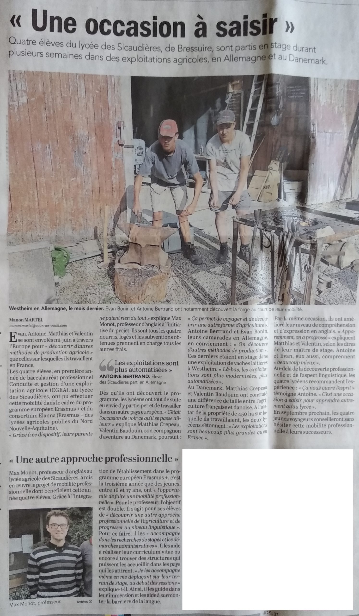 • We should this year send 8 students in work placements in 4 different countries (Italy, Scotland, Denmark, Morocco) with for the first time students in higher education students in laboratory major going abroad. We will work hard to give new opportunities in 2021